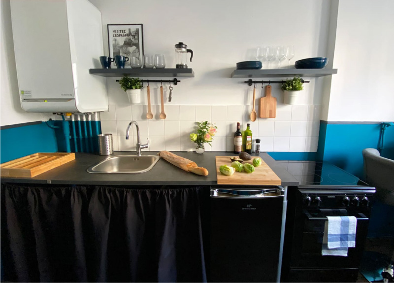В небольшом пространстве приходится экономить на всем. Для готовки лучше всего подойдет встраиваемый мини-холодильник. Его можно спрятать в один из ящиков кухонной гарнитуры.