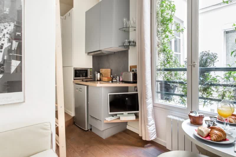 Если у вас маленькое помещение, то лучше всего из французского дизайна подойдет парижский интерьер. Стоит заменить массивную мебель на компактную, а под кухонный уголок выбрать встроенную технику.