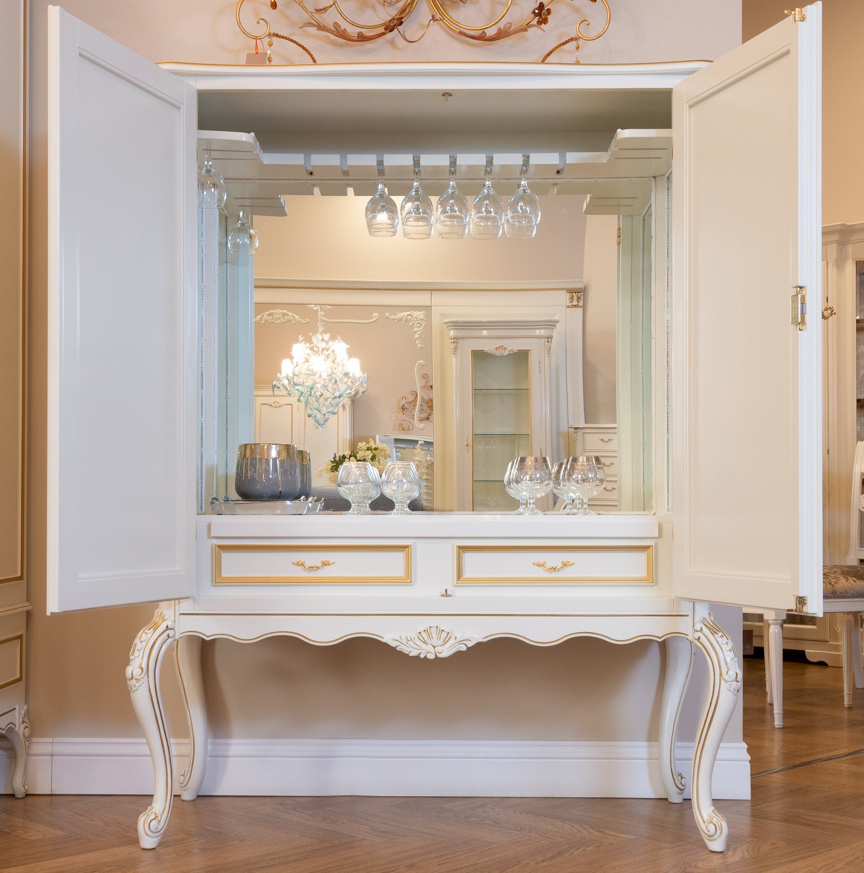 Кухня в классическом имперском стиле должна быть хорошо освещена и наполнена теплым, мягким светом. Крупная хрустальная люстра с плафонами в виде подсвечников, дополненная массивными бра, будет смотреться идеально. Но подойдут и современные светильники в лаконичном дизайне, если их форма будет гармонировать с остальной обстановкой.