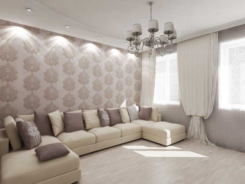 В зале светлые оттенки можно использовать для отделки, а также в цветах текстильных принадлежностей и мебели. Интересно смотрится один цвет, но с различными степенями насыщенности. В качестве напольного покрытия в гостиной может использоваться ламинат или парке. В светлой комнате будет хорошо смотреться, ка темная, так и более светлая мебель.