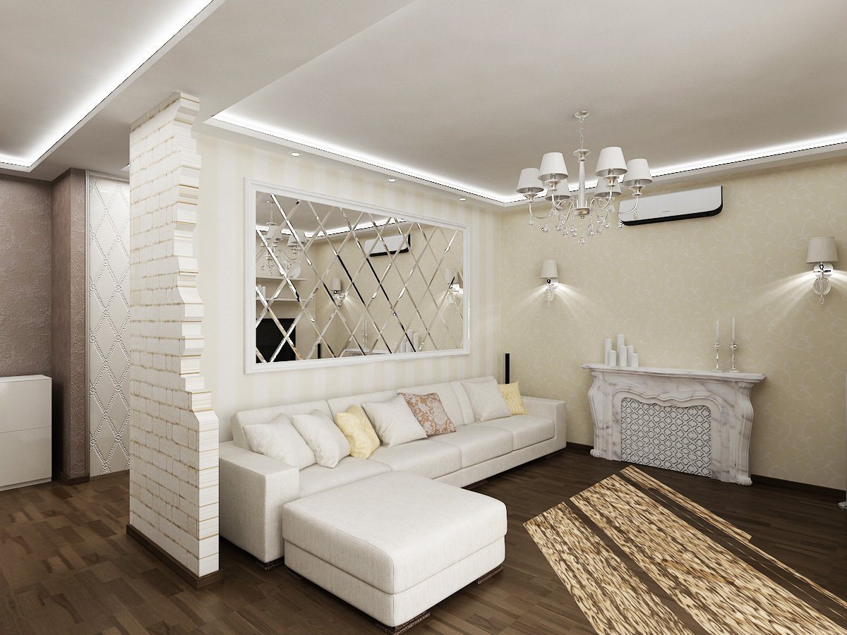 Современный дизайн квартиры в светлых тонах подойдет для помещений, не имеющих окон.