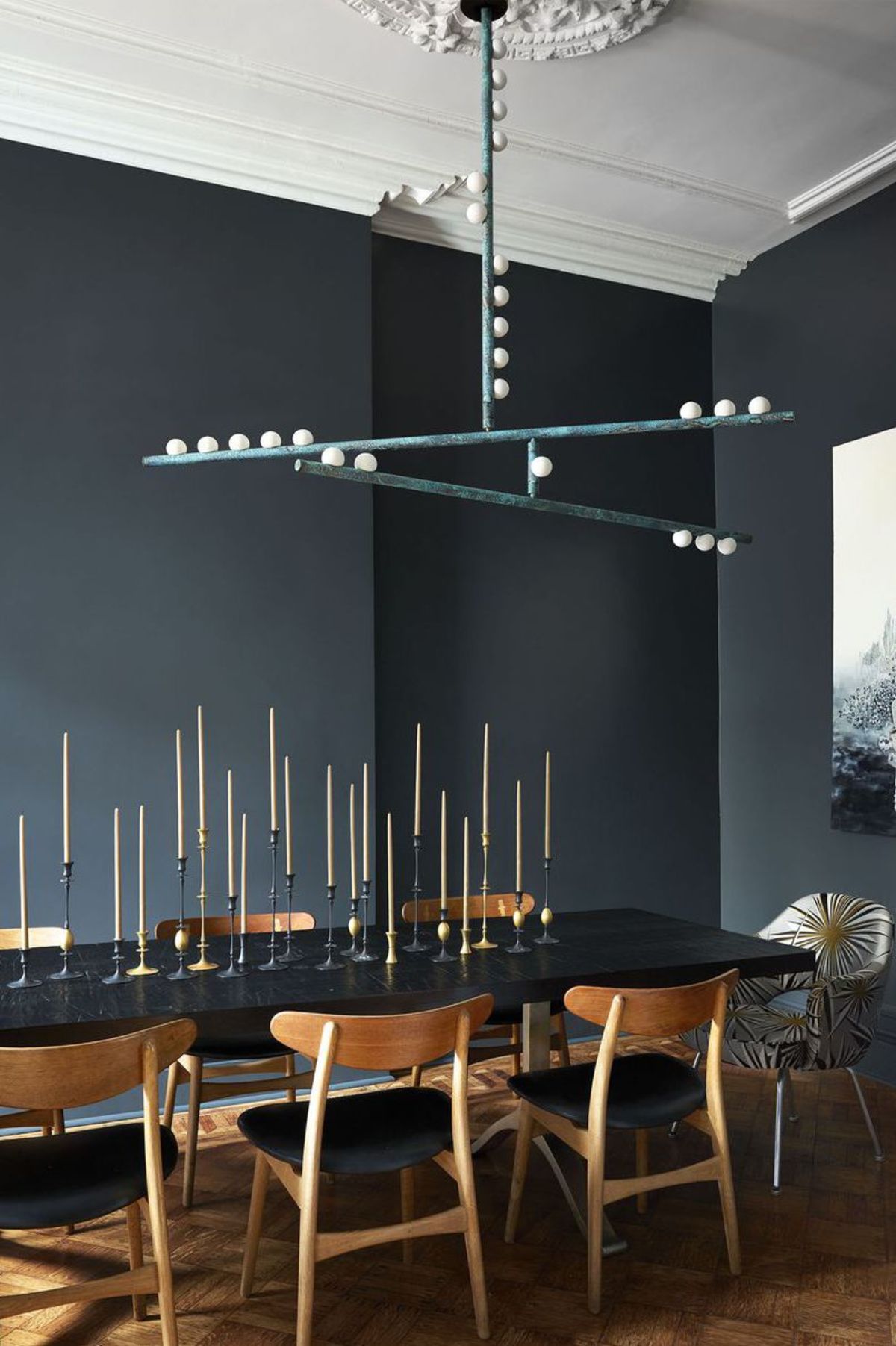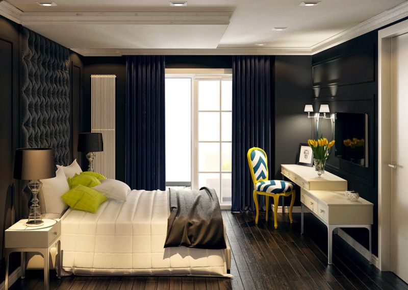 Впечатление от интерьера производит именно цветовое решение. Черный или другой темный тон станет отличным фоном для светлых предметов. Мебель иногда занимает объем помещения больший, чем площадь стен. В этом случае светлый массив мебели будет особенно эффектно выглядеть на фоне стен цвета антрацита, темного бордо, глубокого синего. Продуманное освещение подчеркивает глубину тона и его выразительность.