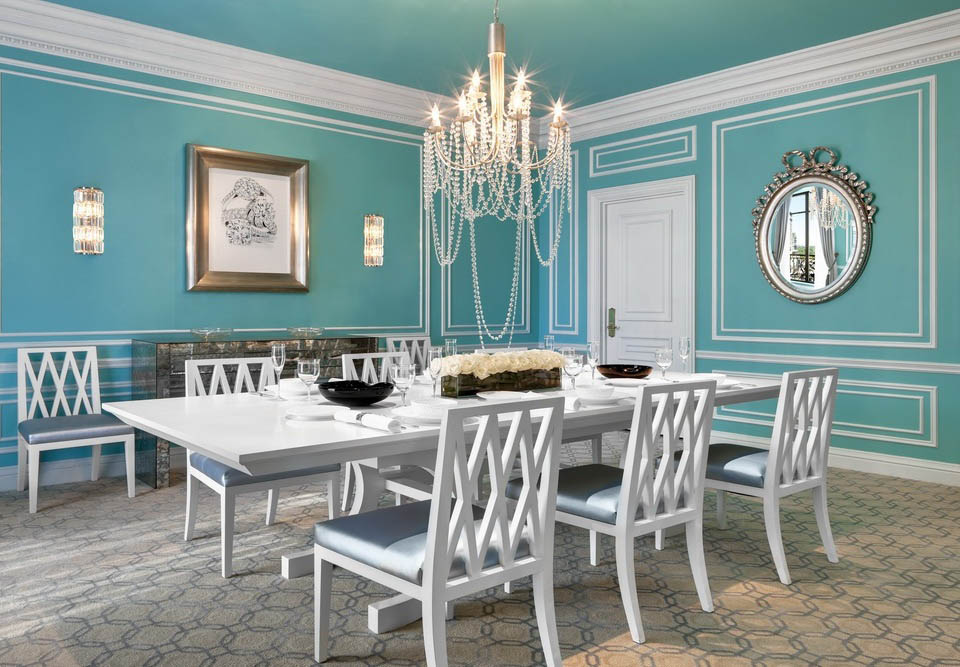 Элементы и акценты в мебели и декоре стиля Тиффани подчеркивают роскошь и изысканность.
