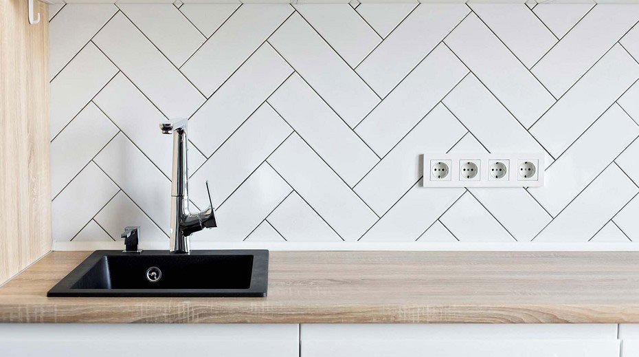 Хорошее место расположения электророзеток на фартуке — 110 см от пола. Правильный способ их размещения — по 3 или 4 штуки в одной рамке. При этом две разные рамки рекомендуется размещать не ближе чем на расстоянии 100 см друг от друга. Также следует учитывать, что не стоит размещать их непосредственно рядом с мойкой и с варочной поверхностью, чтобы на них не попадала влага и они не подвергались действию повышенной температуры.