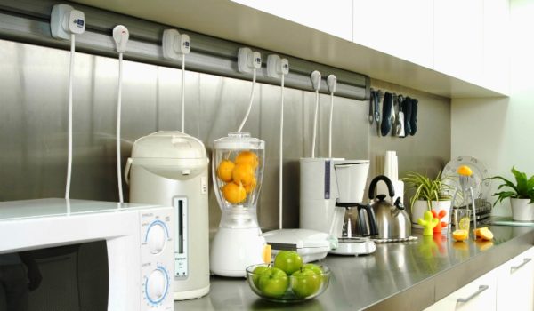 Для кухонного комбайна, электрочайника, кофеварки, блендера, тостера и других подобных устройств электророзетки располагают на фартуке. Поэтому нужно прикинуть, какой бытовой техникой вы будете пользоваться ежедневно (например, электрочайник, тостер, кофемашина), а также прибавить к ним 2-3 запасных электророзетки для подключения миксера, соковыжималки или зарядного устройства для телефона.