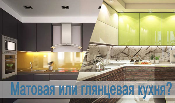 Для зрительного расширения небольших помещений используют светлый глянец, а матовая поверхность лучше выглядит в просторной кухне. Практичным решением может стать сочетание обоих видов покрытий: для верхней части мебели – глянцевое, а для нижней – матовое. Делая выбор в пользу одного из них, необходимо учесть следующее:
