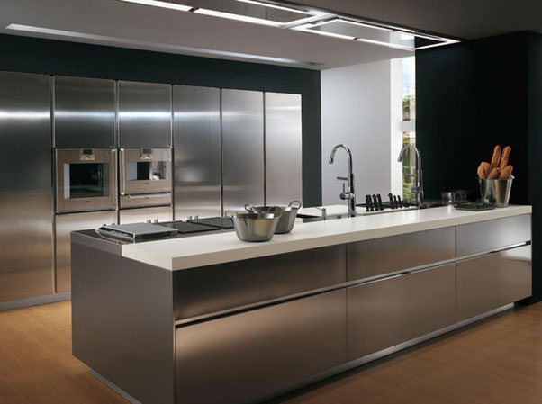 Металл еще является редкостью в оформлении фасадов кухонь, но дизайнеры прогнозируют ему большое будущее.