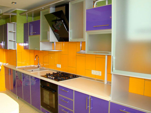 Но все-таки глянцевые поверхности будут прекрасным выбором для маленькой кухни — зрительно расширят пространство. К тому же, степень блеска у материалов бывает разной. Все зависит от покрытия: краска, пленочное, лаковое.