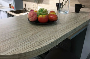 У МДФ плотная структура. В его составе нет опасных формальдегидов, вместо смол используется лигнин и немного парафина, поэтому этот материал идеально подходит для столешниц.