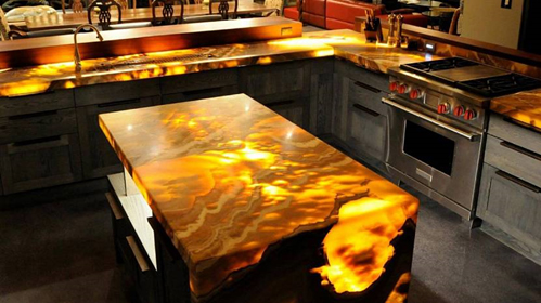Натуральный камень на кухне - это гарантия высокой прочности, а также способности сохранять красоту на протяжении многих лет. Для этих целей подходит не только мрамор и гранит, но также необычный оникс и травертин.