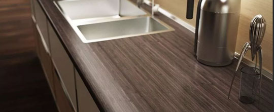 Этот материал является самым бюджетным для кухни. В его основе древесно-стружечная плита, покрытая сверху пластиком, что обусловливает отсутствие швов.