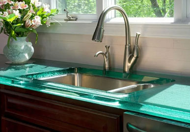 Выбирая такой материал, вы подчеркнете достоинства практичного минимализма, придав ему изящность. Кухонная столешница из стекла выглядит очень элегантно.