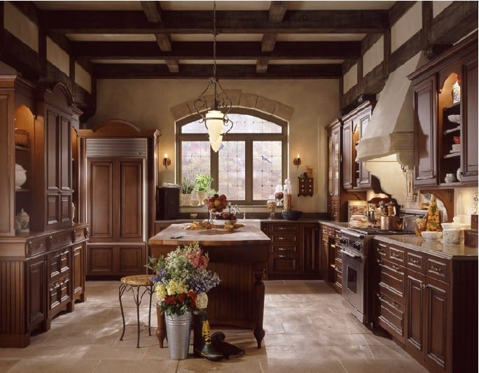 Обладатели небольших кухонных помещений и ценители классики в интерьере по достоинству оценят преимущества кухни в английском стиле. Здесь соединены простота и изысканность, при этом есть место достойной скромности. В оформлении не используются современные композитные металлы, пластмассы и алюминий: вокруг царит дерево, кованный металл и натуральный камень. Подчеркнуть особенности интерьера помогут: