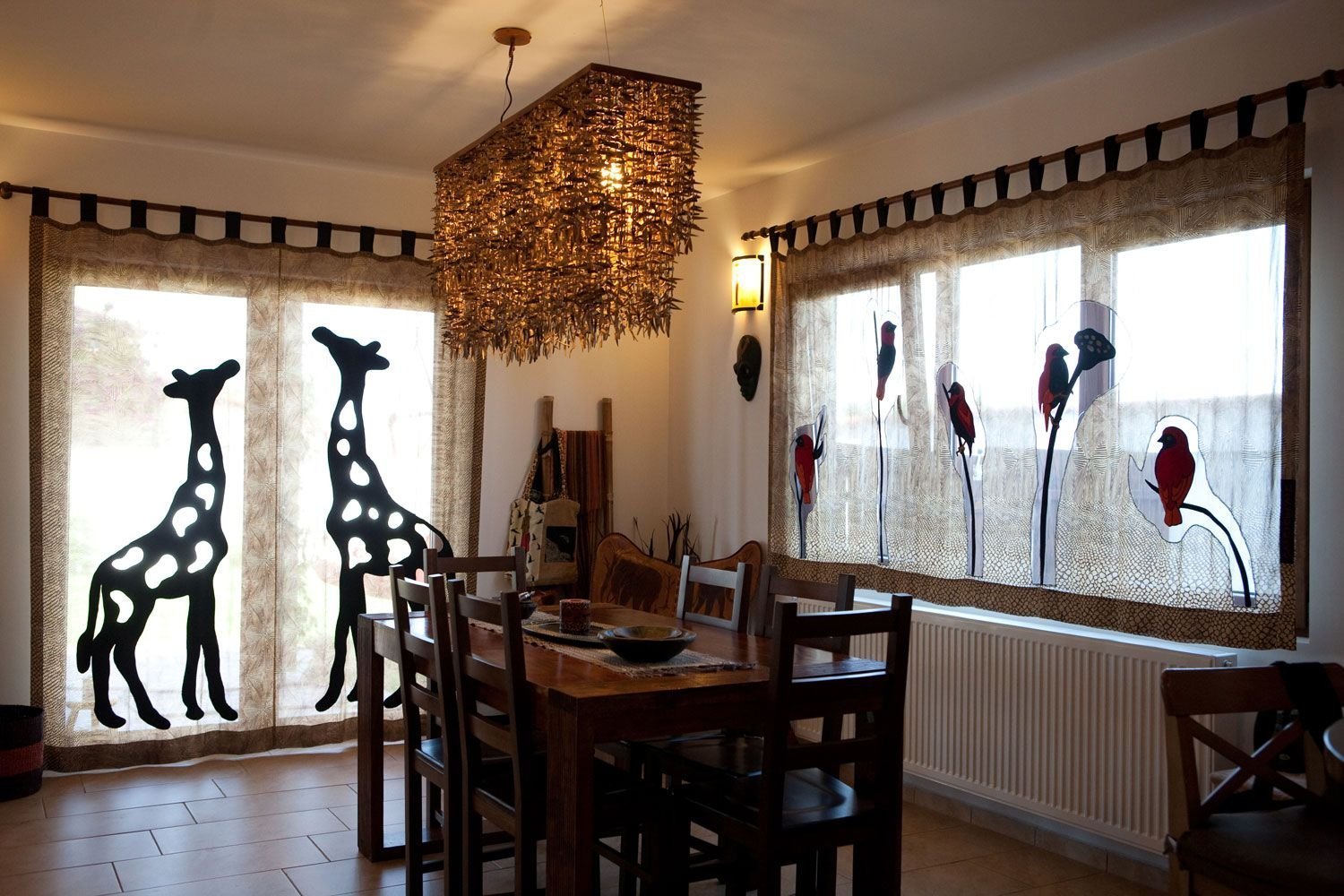 Африканский стиль предполагает использование натуральных материалов для создания атмосферы дикой природы и духа племен. В качестве основных материалов можно использовать дерево, бамбук, ротанг и кожу. Эти материалы могут использоваться для создания мебели, подоконников, столешниц и т.д.
