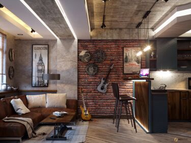 Не забывайте также, что если вы оформляете студию, то элементы гранжа должны присутствовать и в жилой зоне.