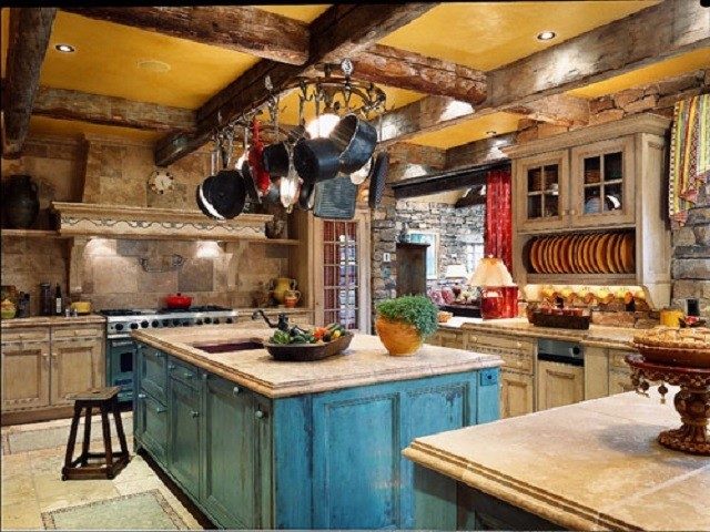 - аксессуары. Их не должно быть много, но в качестве акцентов подойдут винтажные полки, вазы, корзинки, металлическая посуда, живые цветы.