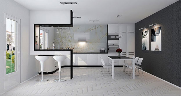 Однако перед созданием такой планировки, необходимо тщательно продумать расположение мебели, тумбочек, ящиков и других элементов, которые ежедневно используются в процессе готовки и уборки. Отлично сочетается с барной стойкой, которая может добавить роскоши и элегантности.