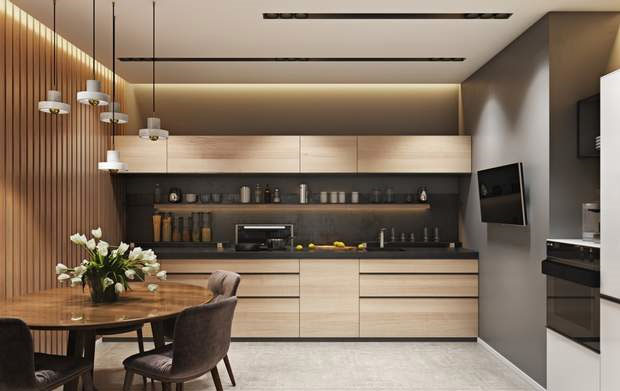 Сегодня классический модерн встречается редко, поскольку многие хотят совместить множество интерьеров и сделать бюджетный ремонт. Данный вариант оформления кухни этого не позволяет, так как придется воспользоваться помощью дизайнера и приобретать мебель на заказ.