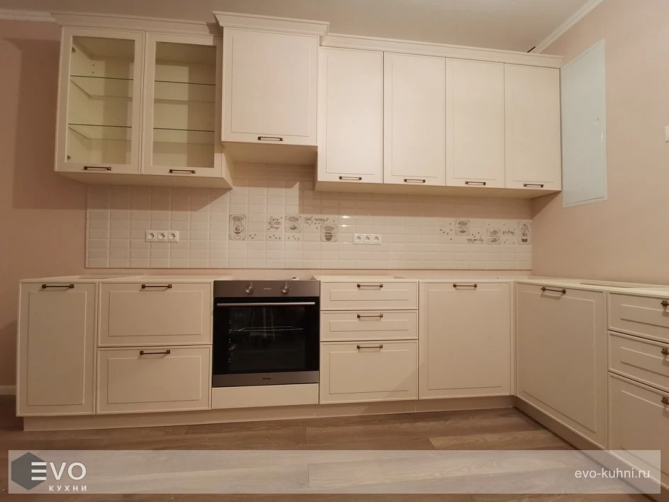 Фасады — рамочные, иногда с фрезеровкой, но без излишней вычурности. Хорошо смотрятся: