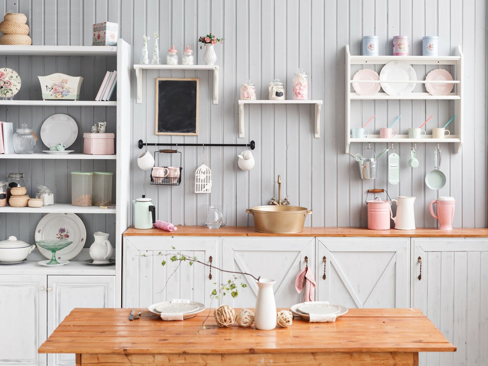 Какой бы аскетичной не была кухня, представить ее совсем без декоративных элементов невозможно. Строгая философия датского стиля не ограничивает использование декора, особенно привлекательно в интерьере смотрятся аксессуары винтажной стилистики. Посуда тоже должна соответствовать общей тематике, как по материалам изготовления, так и по цвету. Главные правила: