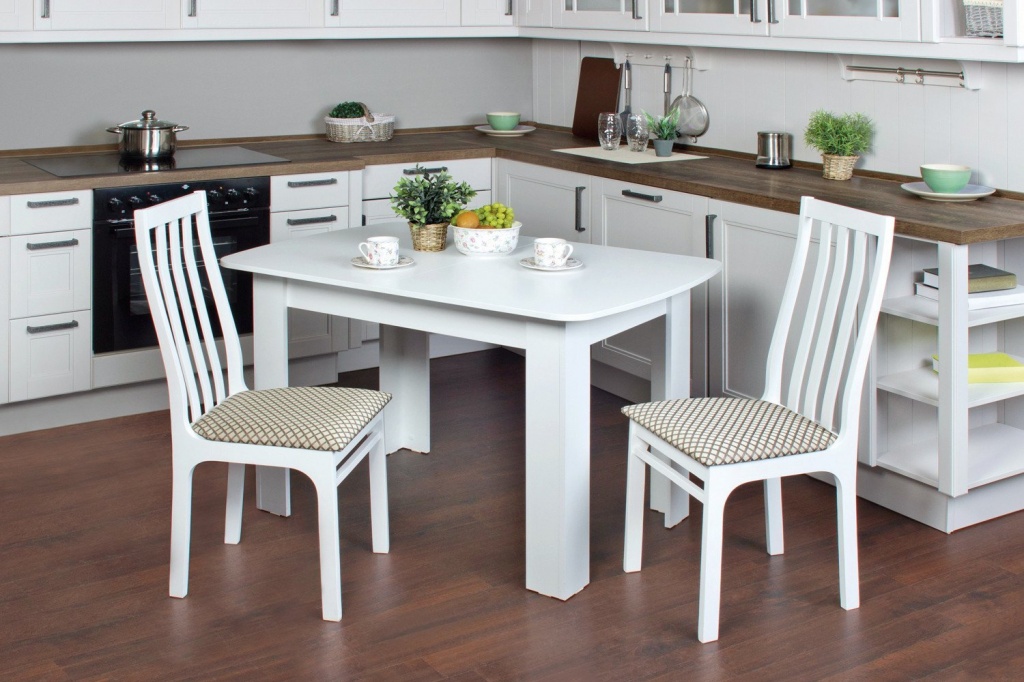 Стулья в классическом формате служат одновременно и украшением помещения. Они необходимы для того, чтобы создать дополнительное место за столом. Убирая их под стол, можно существенно увеличить пространство.