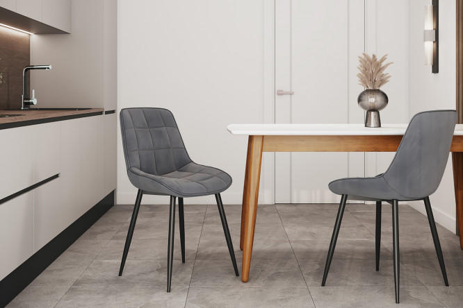Комфорт является важнейшим элементом кухонного стула. При этом не менее важно, чтобы тело располагалось в правильной позе. Во время обеда важно сохранять прямое положение тела, не ложась и не выгибая спину, именно поэтому следует избегать кресел с наклонной спинкой. Лучше выбирать эргономичные кухонные стулья, которые не загромождают пространство. Рассчитывайте домашнее пространство, учитывая, что минимальный размер обычно составляет 60-70 см. Если вам нужно обставить довольно маленькую кухню, можно выбрать складные модели, которые можно убрать в угол, когда они перестанут быть полезными.