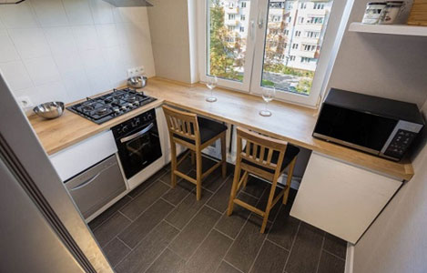 Дизайн столешниц отличается большим разнообразием, что позволяет установить подобную конструкцию в хрущевке и в большом доме в классическом стиле. Столешницу выбирают исходя из ее конструкционных особенностей. Для ужина в кругу семьи они раскладываются до обеденного стола, а в остальное время неширокий подоконник не станет помехой для передвижения. Для небольшой кухни хрущевок – это идеальный вариант, чтобы освободить пространство./