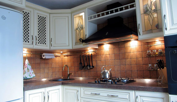 - обязательно устанавливается подсветка под навесными шкафами, особенно в зоне плиты и мойки;