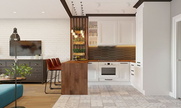 Акцент на деталях придаст помещению живости. Грамотно обустроенное искусственное освещение в дневное время позволяет формировать великолепную атмосферу в вечернее время. Правильно выбранные гардины рассеивают яркие солнечные лучи днем, делая при этом кухню уютной. Встроенная техника для дома упорядочит пространство, а стильный кухонный фартук задаст тон творческой идее.