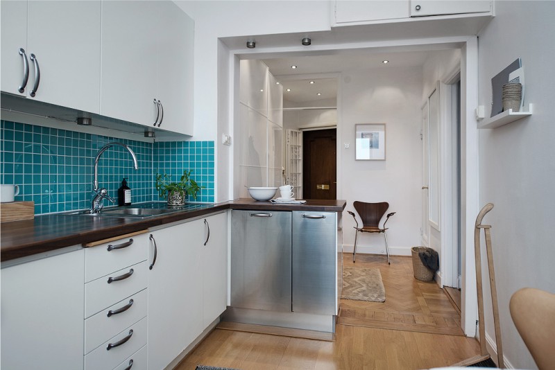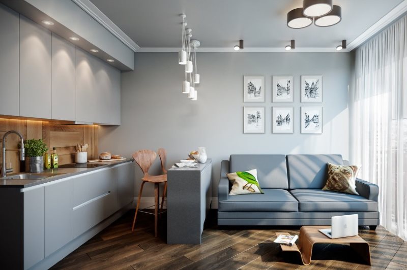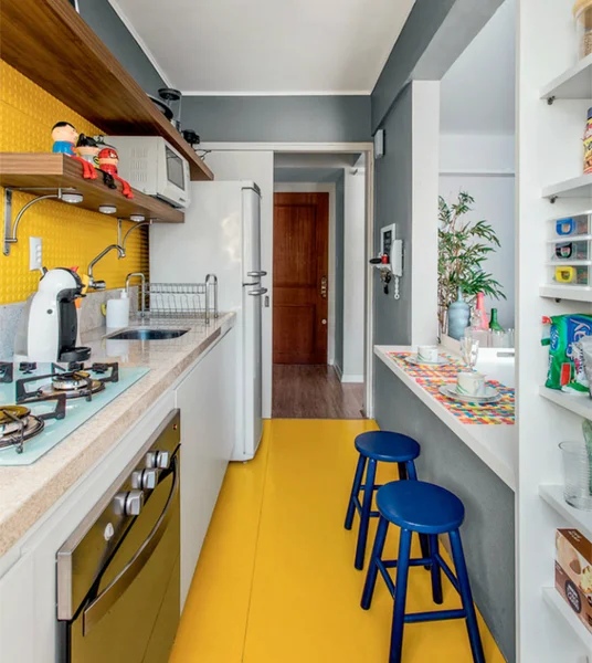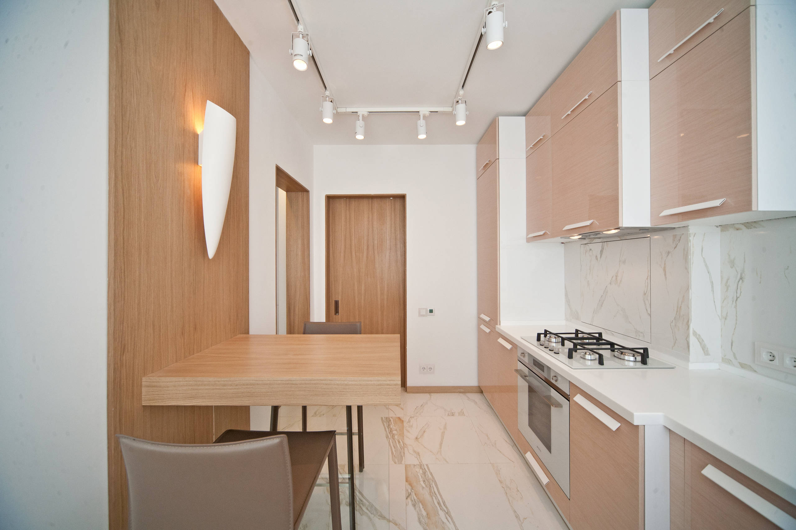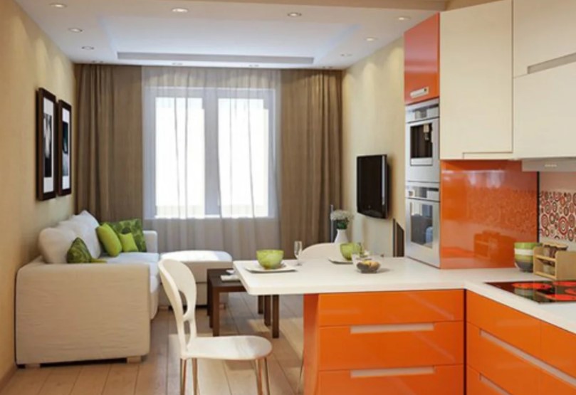- проходная кухня не должна оснащаться остовом или барными стойками, если размер комнаты маленький;