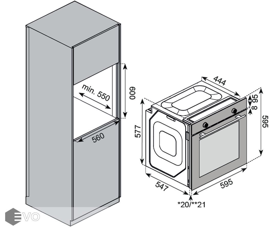 | Размеры встраивания (ВхШхГ), мм: | 600х560х550 |