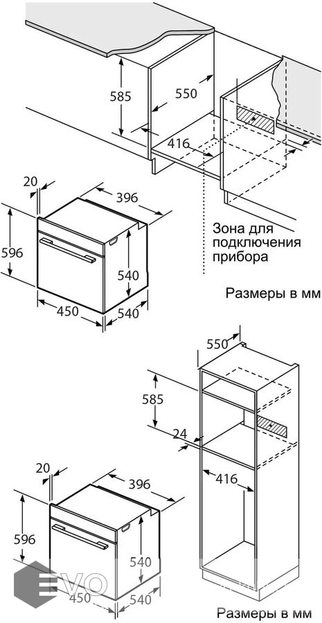 Размеры встраивания (ВхШхГ), мм: 585х416х550 мм