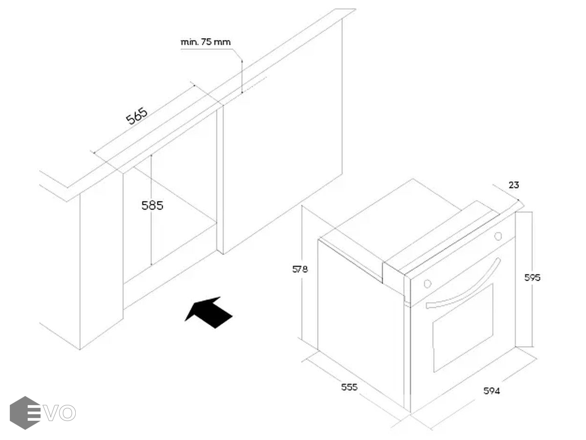 | Размеры встраивания (ВхШхГ), мм: | 600х565х585 мм |