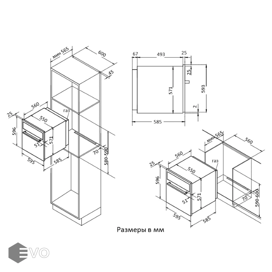 - Габариты встраивания (ВхШхГ), мм: 590-600х560х565