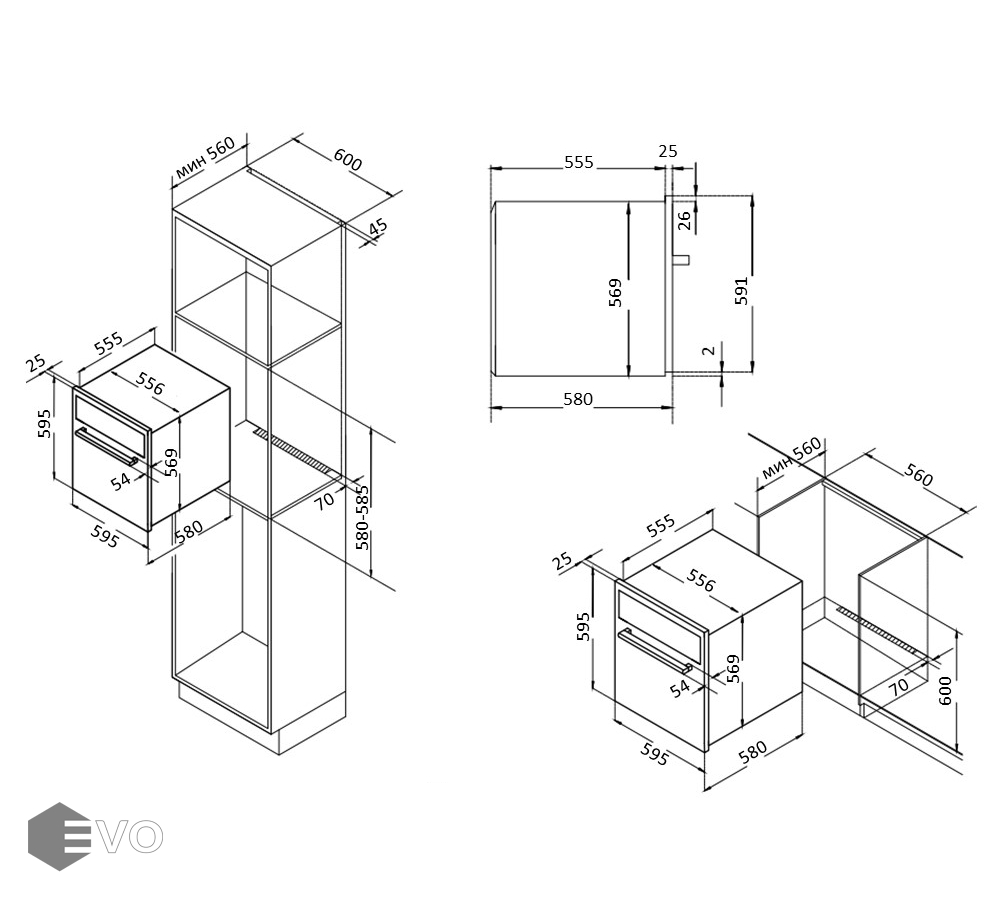 - Габариты встраивания (ВхШхГ), мм: 600х560х560