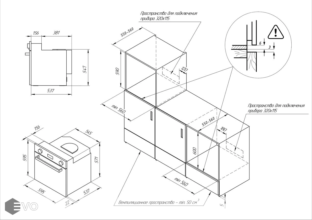 Размеры встраивания (ВхШхГ), мм: 600×560×580