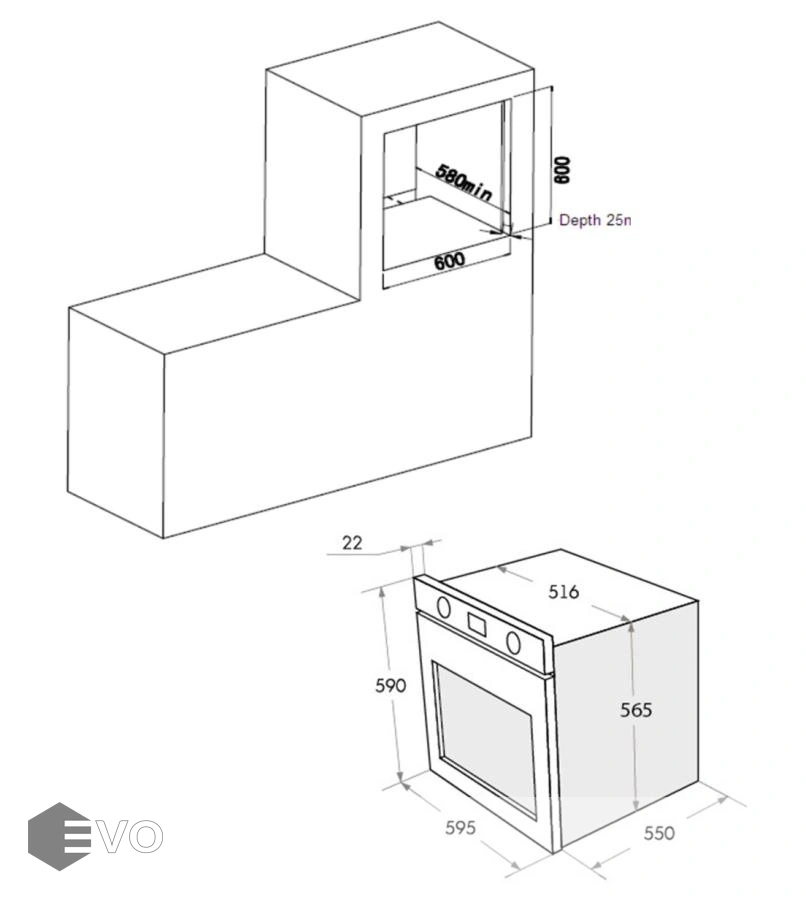 - Глубина, мм: 550