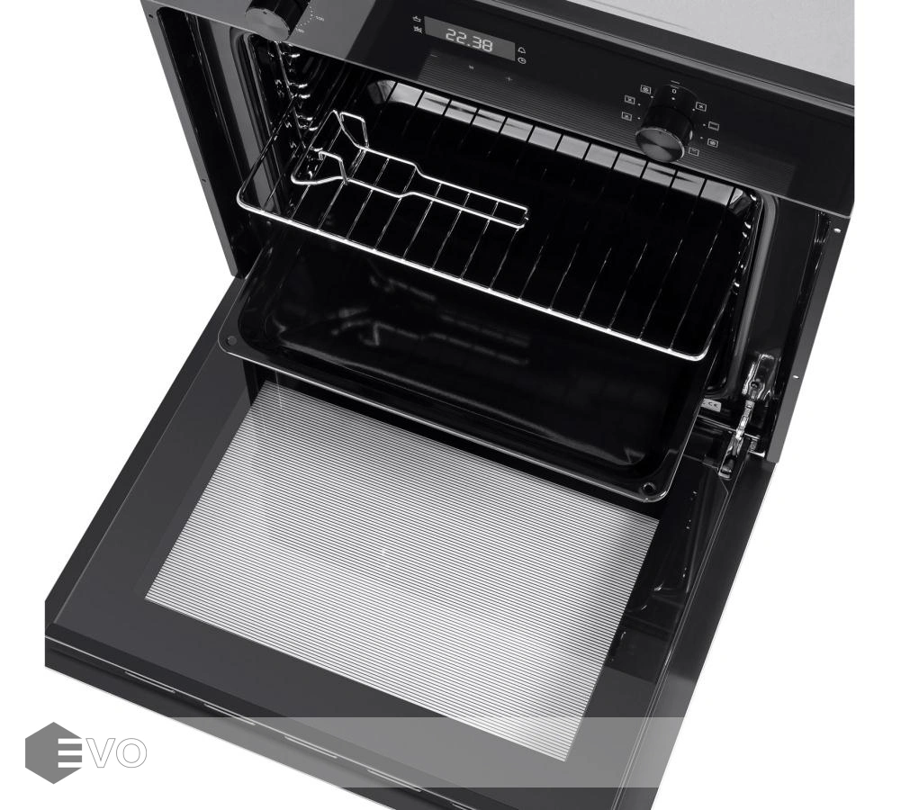 Тангенциальное охлаждение, реализованное в данной модели минимизирует передачу тепла от духовки предметам, находящимся рядом, например мебели. Фронтальная панель духовки выполнена из высококачественного жаропрочного тонированного стекла и укомплектованная фурнитурой в цвет панели.