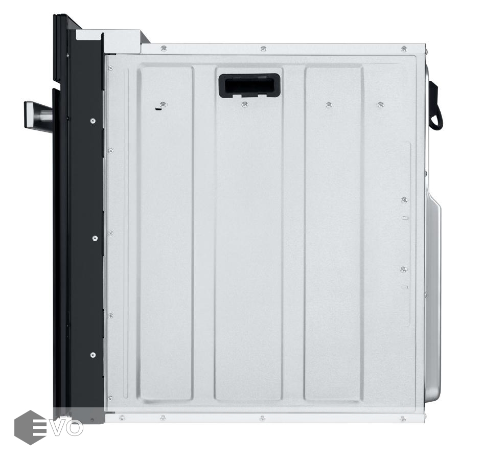 По периметру фасада сделана окантовка из матированного алюминия. Фронтальная панель духовки выполнена из высококачественного жаропрочного тонированного стекла. Дверца оснащена доводчиком.