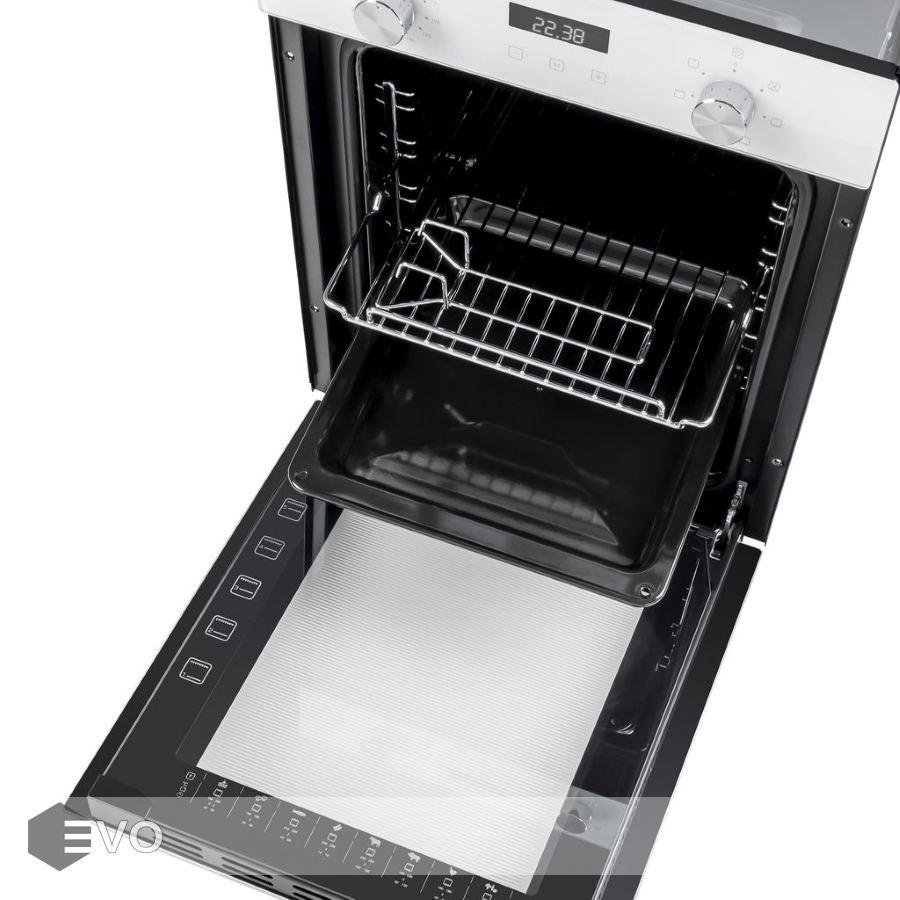 Шкаф духовой электрический MAUNFELD EOEM516W – электрический встраиваемый духовой шкаф объемом 51 л и шириной всего 45 см позволяет готовить ваши любимые блюда, разместив решетку или противень на одном из 5 уровней боковых направляющих. Внутреннее покрытие камеры выполнено из специальной легкоочищающейся эмали черного цвета.
