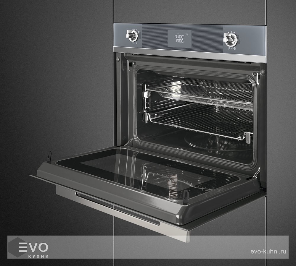 Электрический духовой шкаф с микроволновкой Smeg SF4102MCS – духовой шкаф, комбинированный с микроволновой печью, позволяет объединить два разных способа приготовления (традиционное с микроволнами). Функция «ECO» позволяет готовить большого количества пищи с низким потреблением электроэнергии.