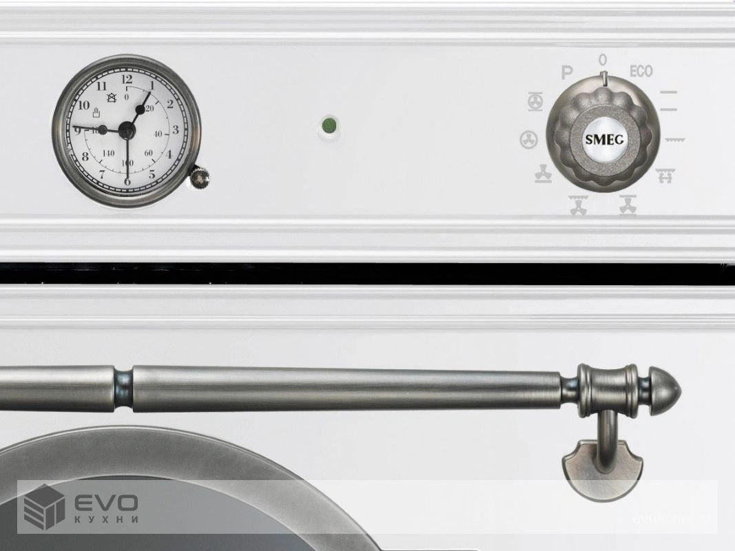 Для экономии электроэнергии без снижения качества приготовления служит функция «ECO», сочетающая традиционный нагрев и конвекцию. На панели управления в верхней части фасада находятся аналоговый программатор-таймер с часами и два поворотных регулятора для выбора режима работы и температуры нагрева в диапазоне от 50 до 250 °C.