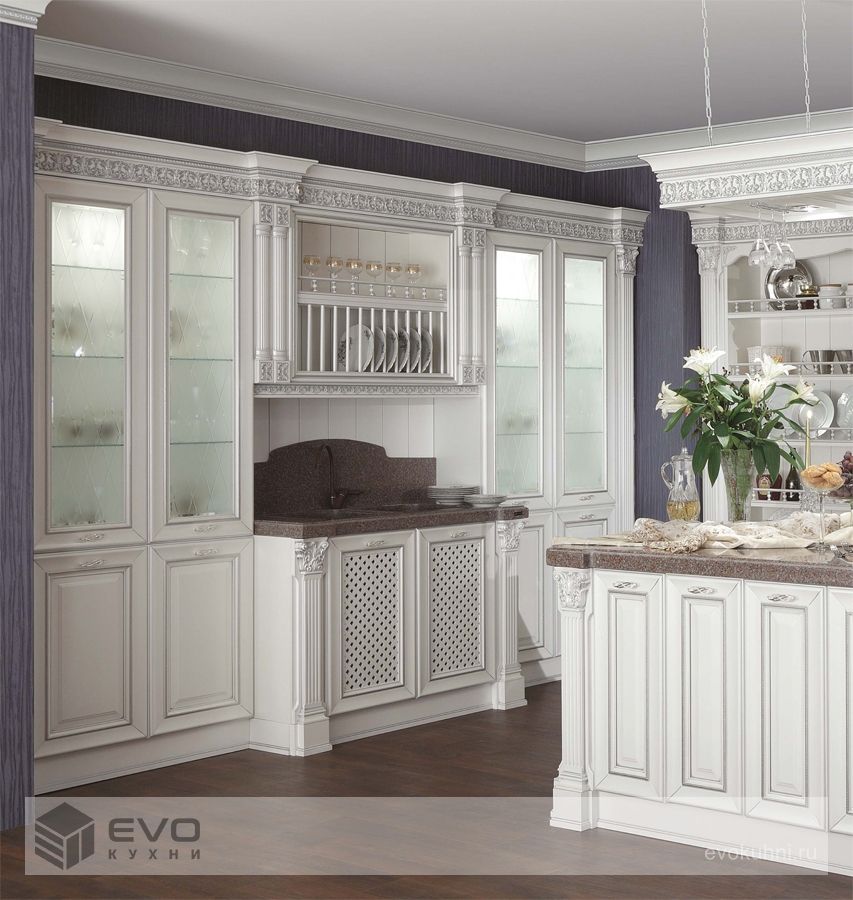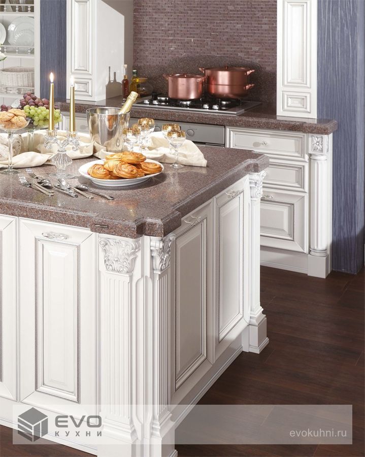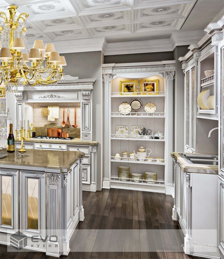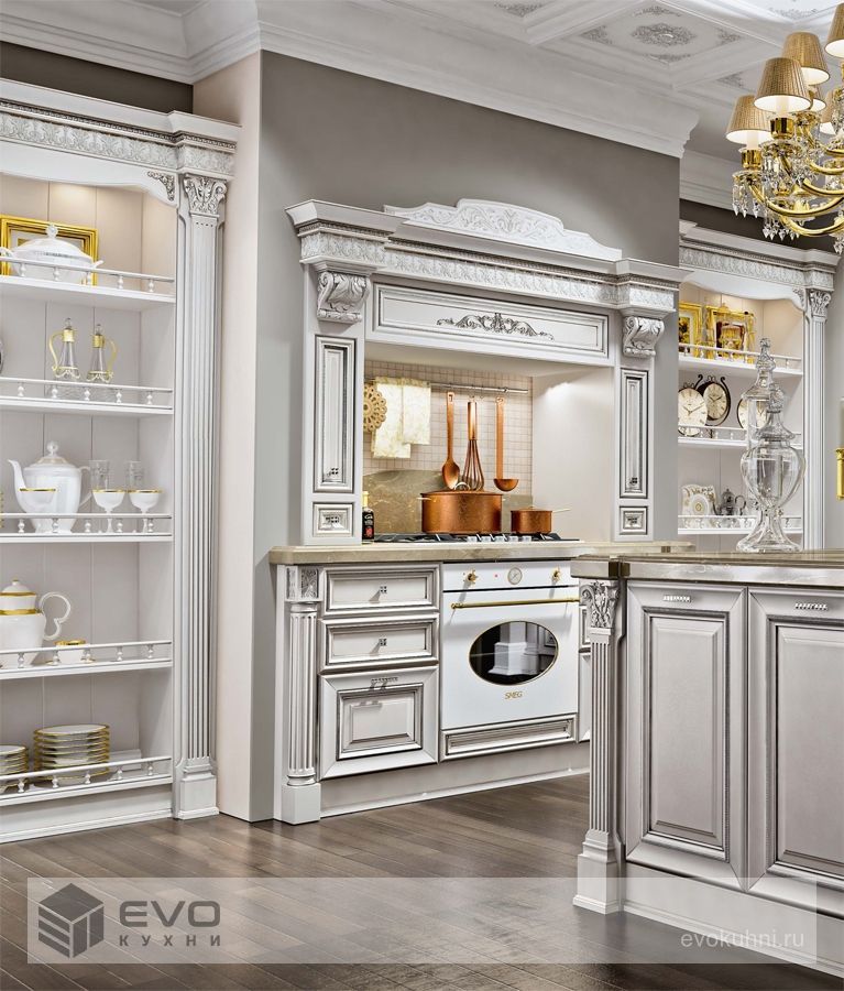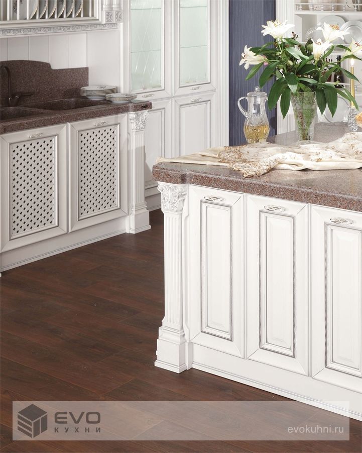 Отделкаlaccato с закрытой текстурой, цвет “белый перламутр”, платиновая антикатура, лакирование