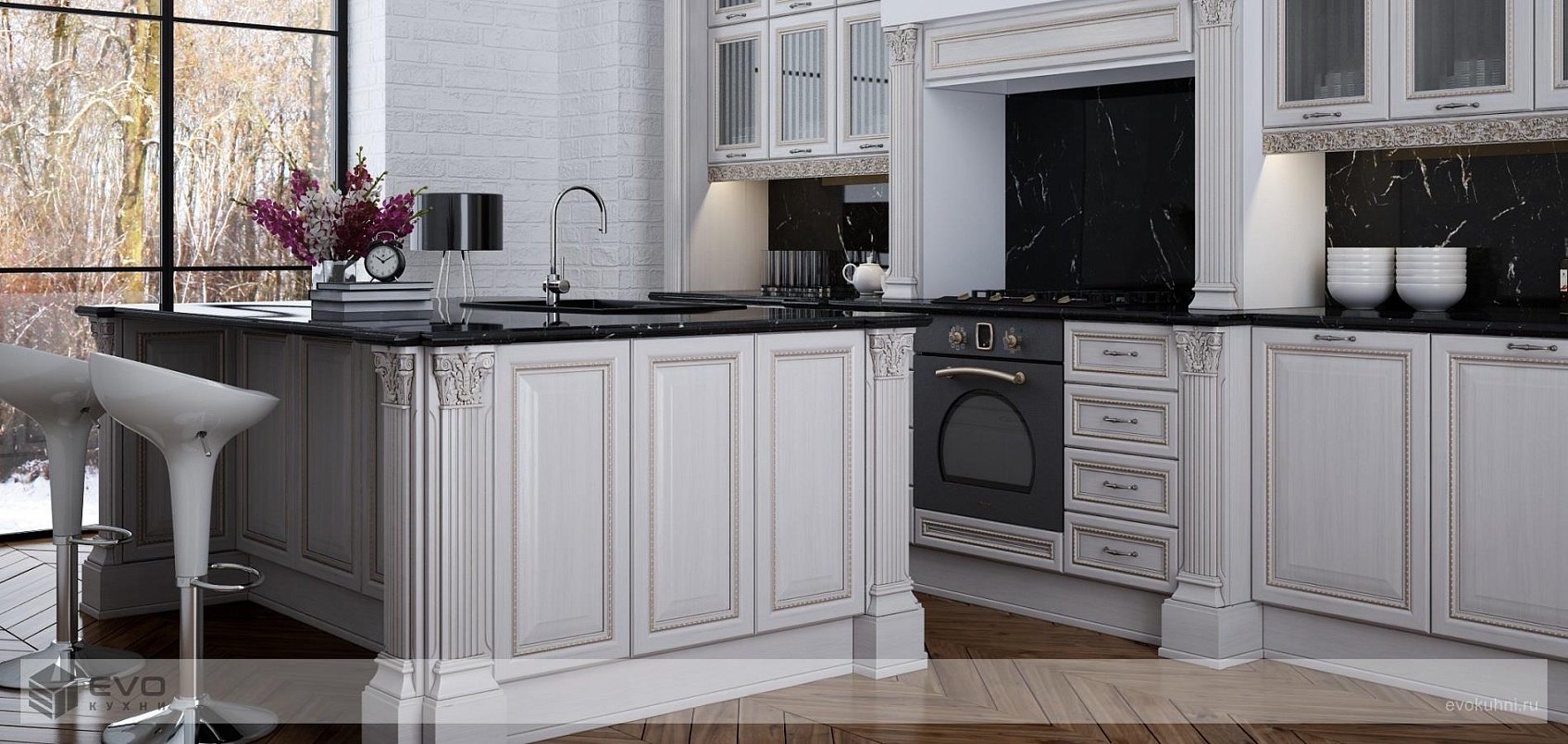 "Коллекция «Лоренцо» - мечта эстета! Светлый цвет коллекции поможет зрительно увеличить пространство маленькой кухни в городской квартире и сделает ее более уютной, а широкий набор декоративных элементов даст практически неограниченные возможности для самовыражения хозяевам просторной кухни загородного дома. Оформление золотой патиной добавит интерьеру царского величия и роскоши эпохи Барокко."