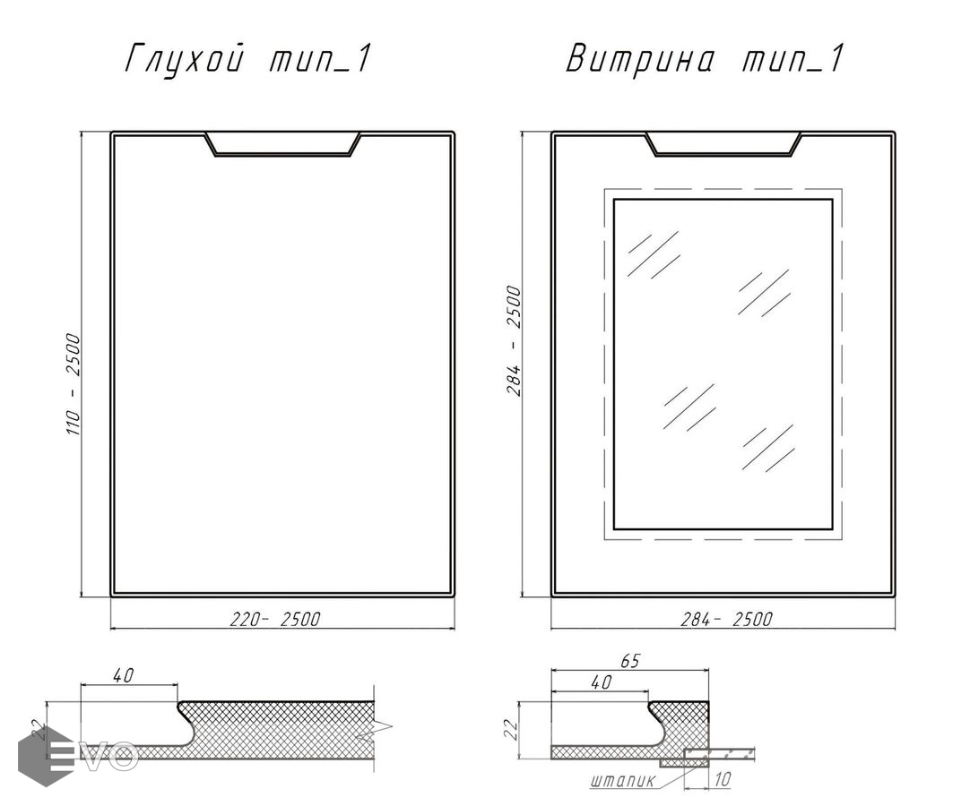 Тип фасада: Витрина Глухой Фасад с ручкой