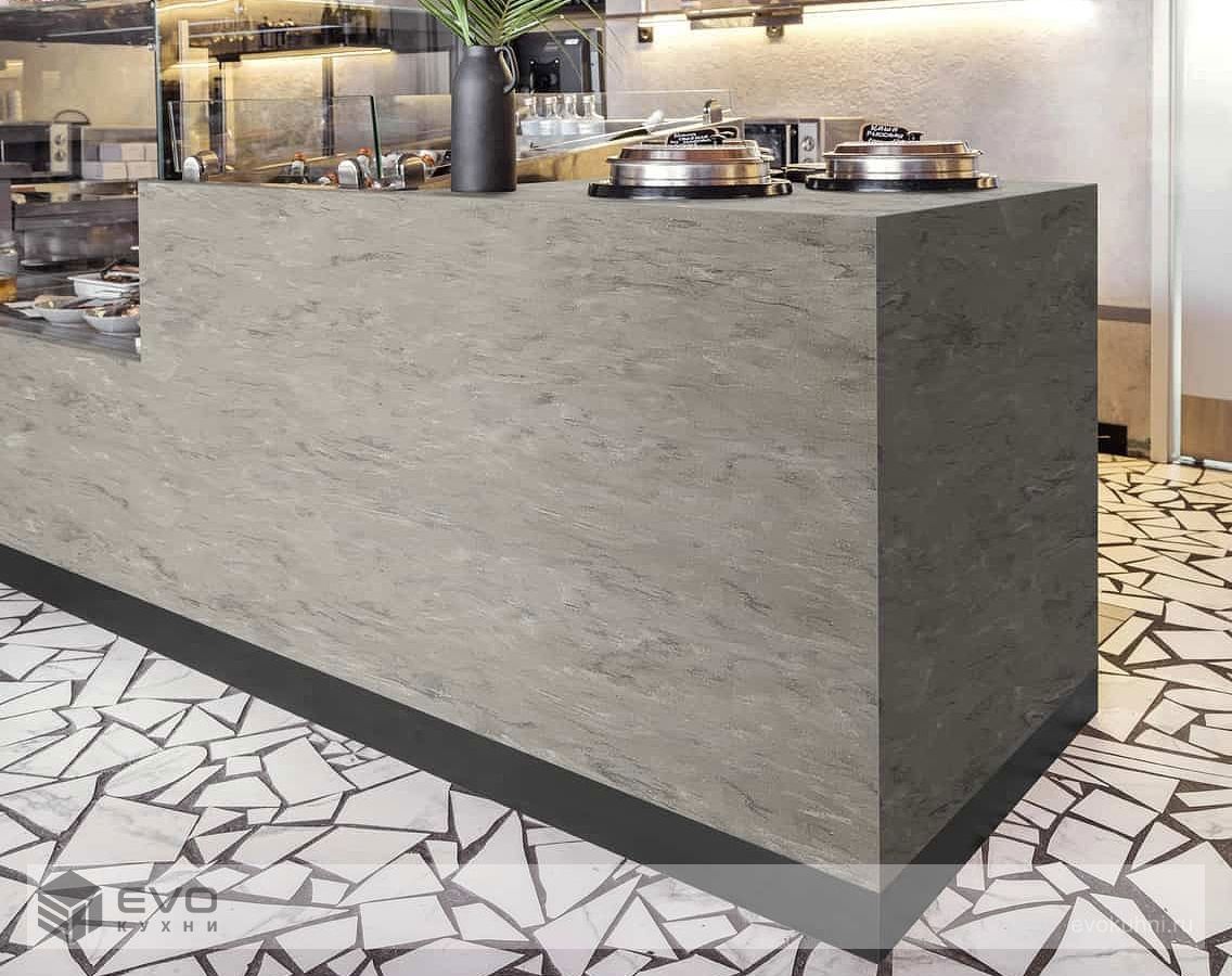 Corian Ash Aggregate содержит прожилки, расположенные случайным образом. Прожилки могут быть различной насыщенности и выделять места швов.