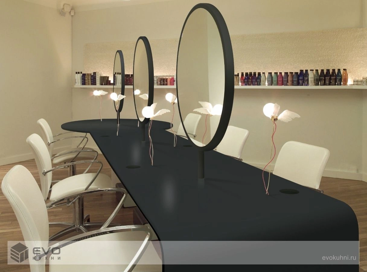 Дизайнеров этот материал привлекает тем, что при термообработке ему можно придать любую форму, поэтому из него зачастую производятся разнообразные элементы декора. Чаще всего, изделия из данного вида искусственного камня применяются в интерьерах ванных комнат, кухонь, для изготовления мебели, осветительных приборов, подоконников, при облицовке стен.