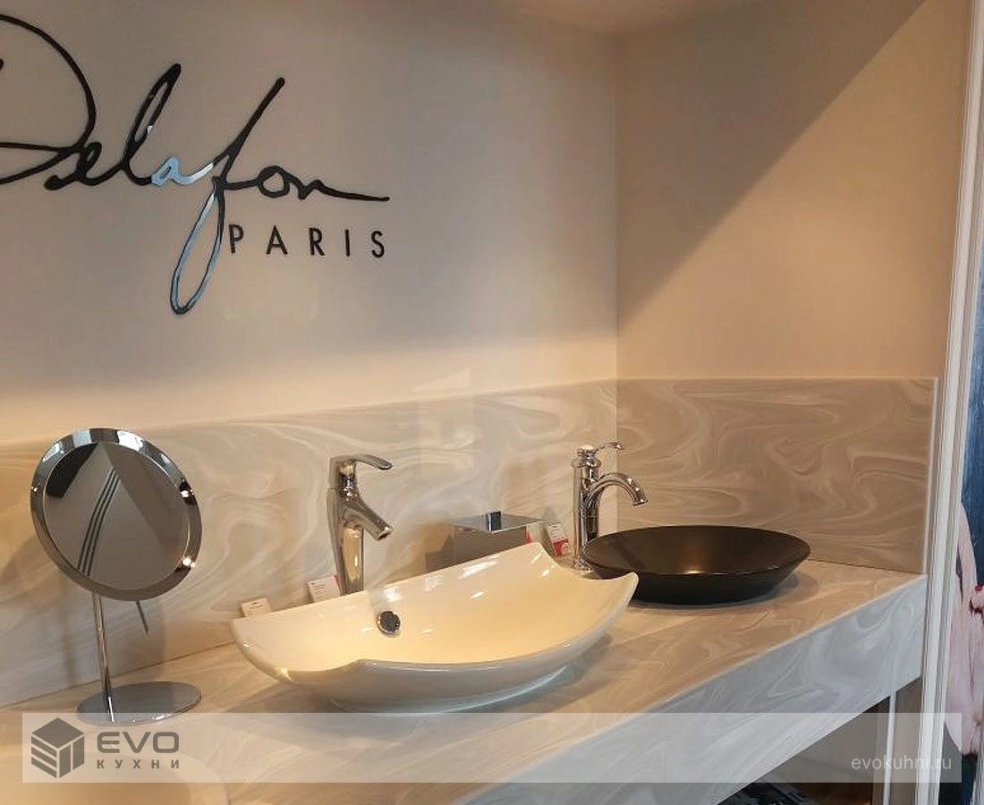 Дизайнеров этот материал привлекает тем, что при термообработке ему можно придать любую форму, поэтому из него зачастую производятся разнообразные элементы декора. Чаще всего, изделия из данного вида искусственного камня применяются в интерьерах ванных комнат, кухонь, для изготовления мебели, осветительных приборов, подоконников, при облицовке стен.