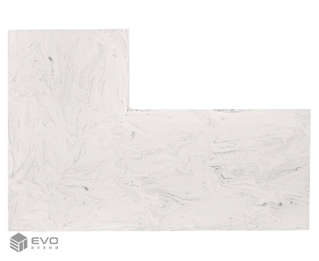 Угловатые полоски белого, желтовато-коричневого и серого тонов на белом фоне. Вкрапления белого и серого формируют роскошную, ярко выраженную текстуру с приглушенными, изысканными оттенками.