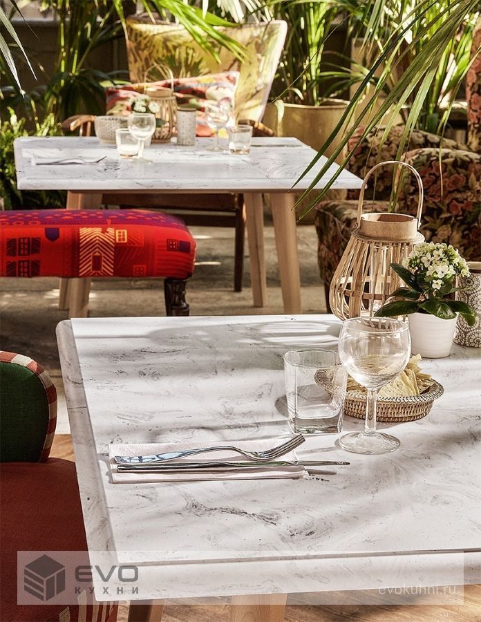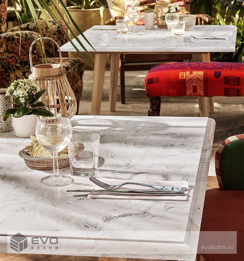 Дизайнеров этот материал привлекает тем, что при термообработке ему можно придать любую форму, поэтому из него зачастую производятся разнообразные элементы декора. Чаще всего, изделия из данного вида искусственного камня применяются в интерьерах ванных комнат, кухонь, для изготовления мебели, осветительных приборов, подоконников, при облицовке стен.